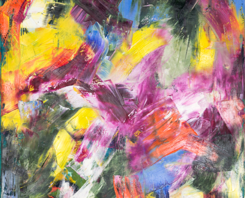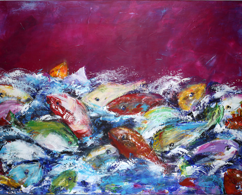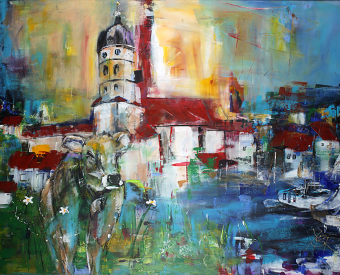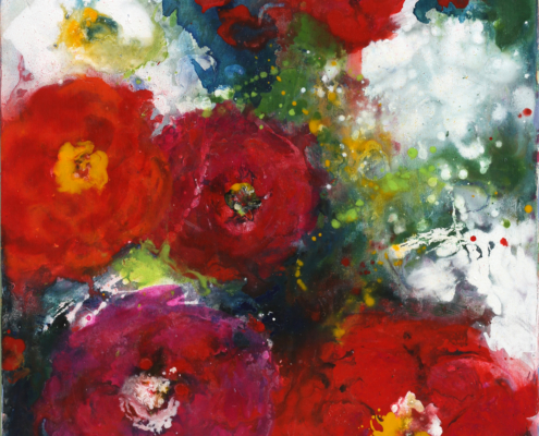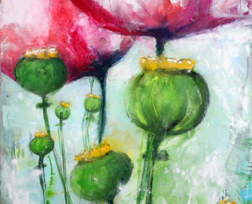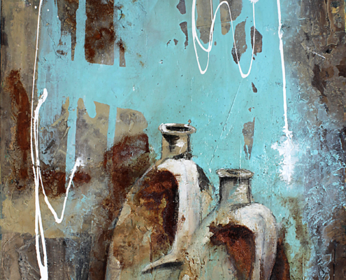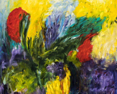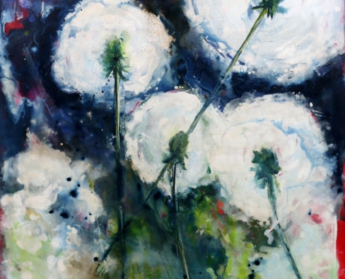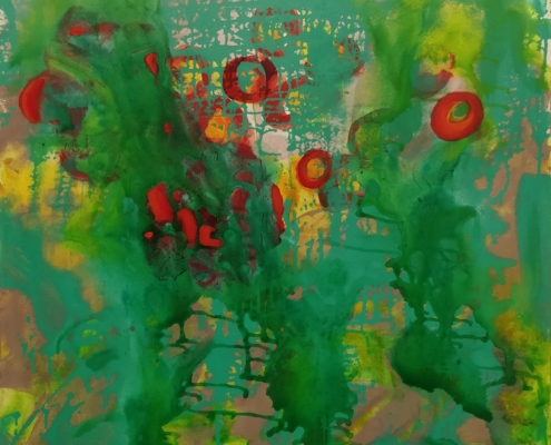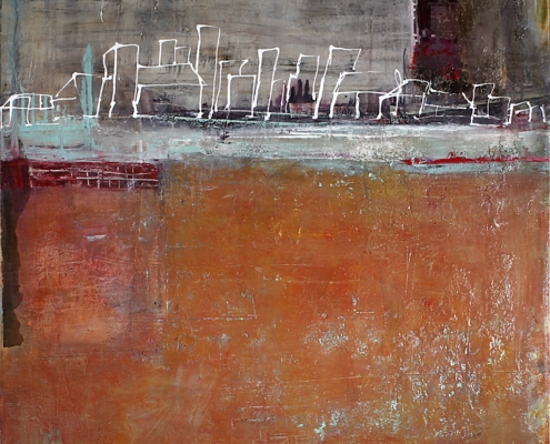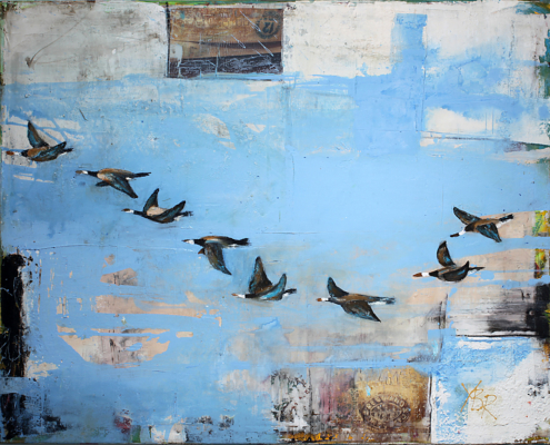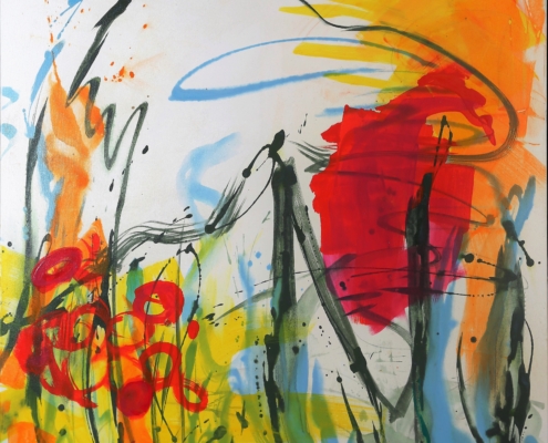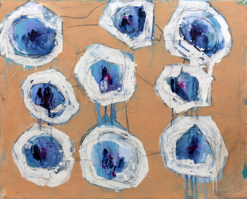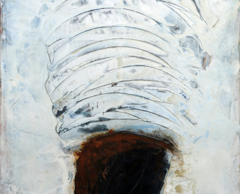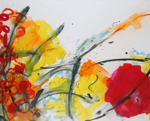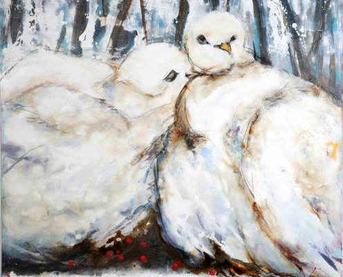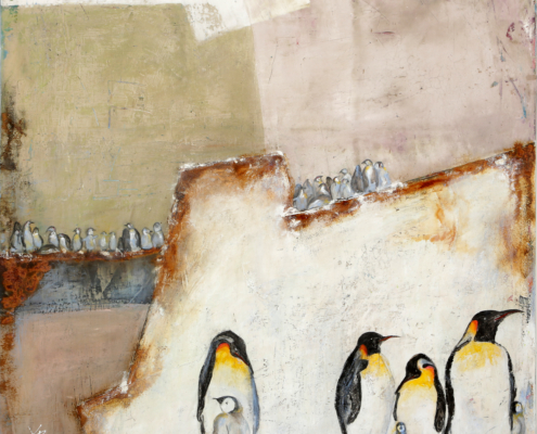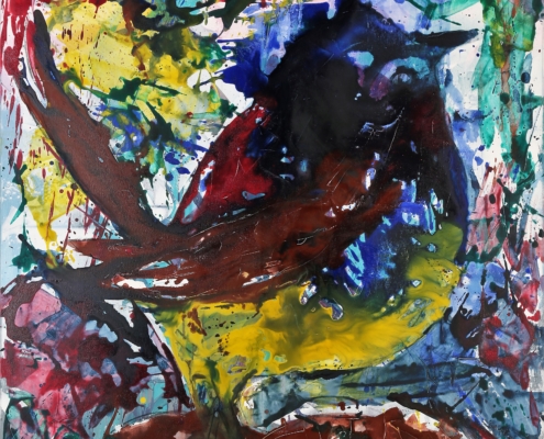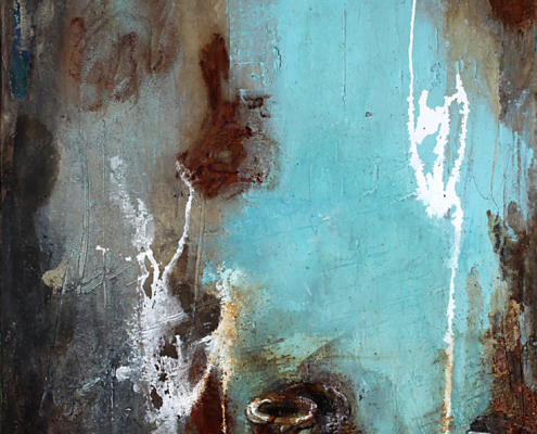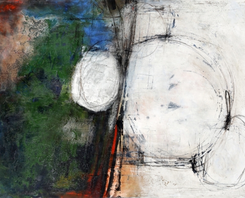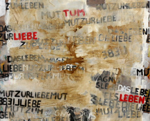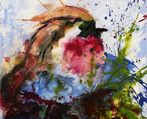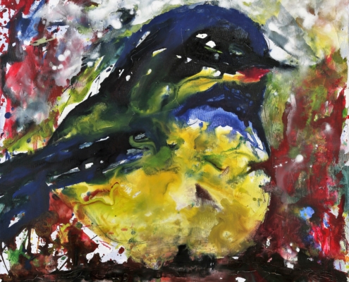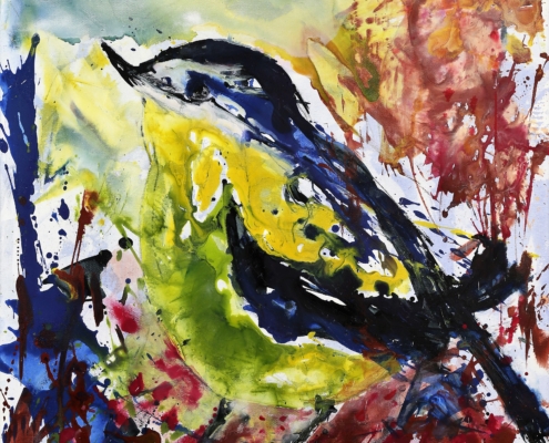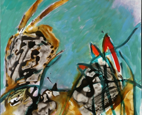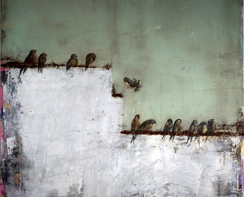 Ich liebe abstrakte Formen, in denen z.B. überraschend reale Vögel und/oder andere Tiere/Pflanzen auftauchen. Dadurch entsteht eine Anmutung zwischen rauh und zart, eine sichtbar werdende Beziehung… “