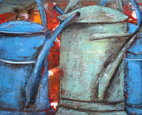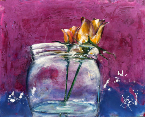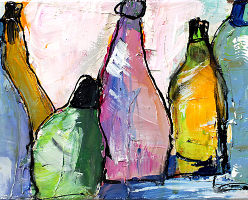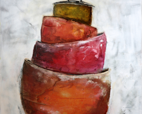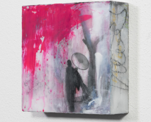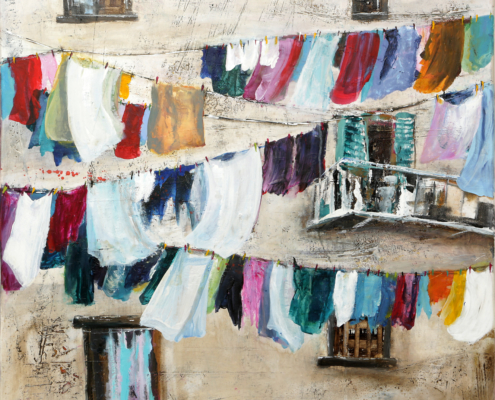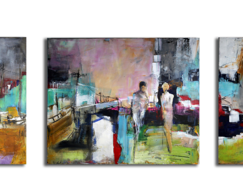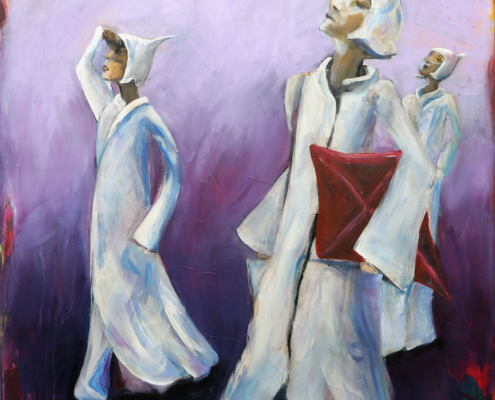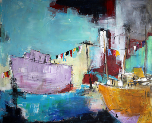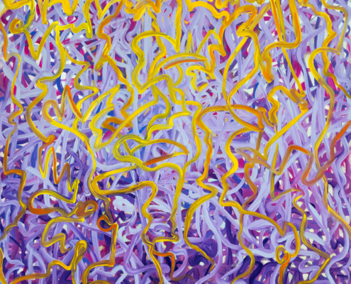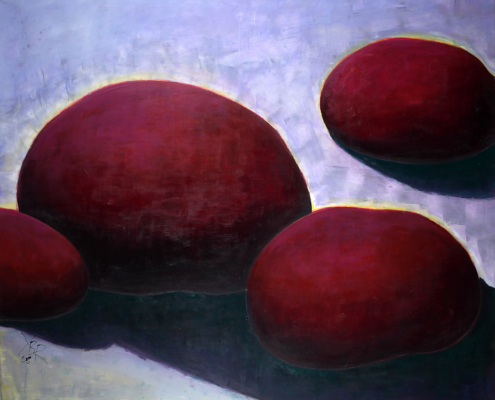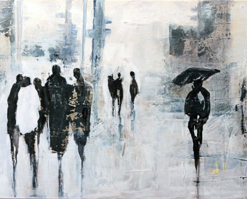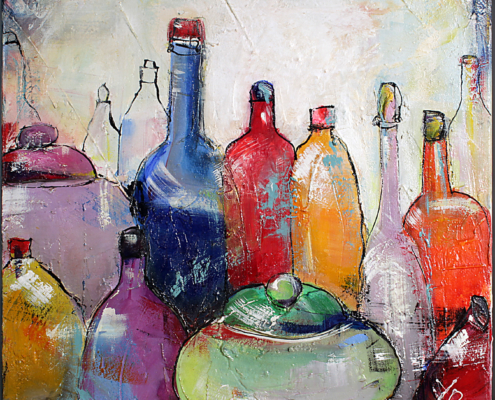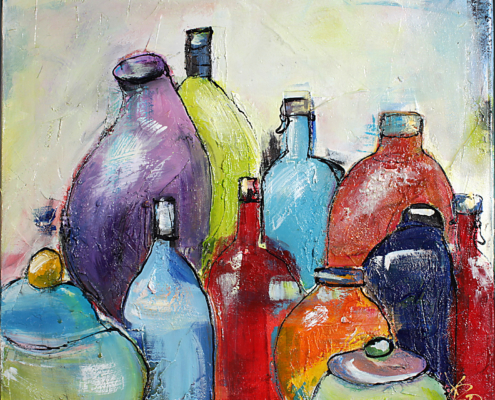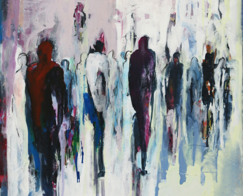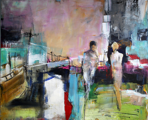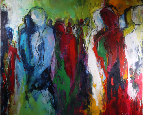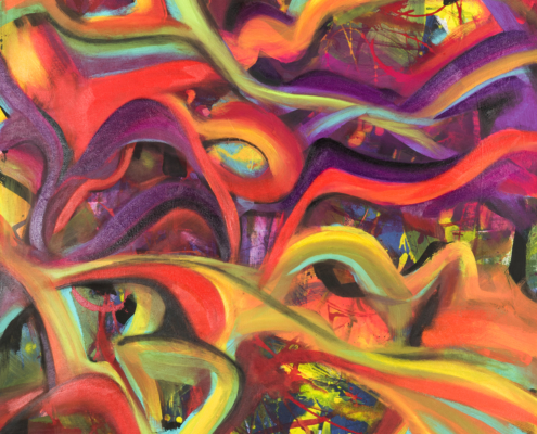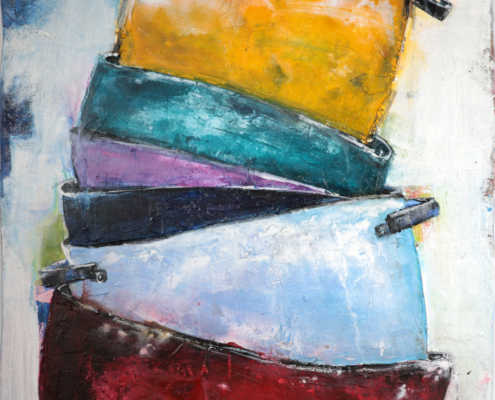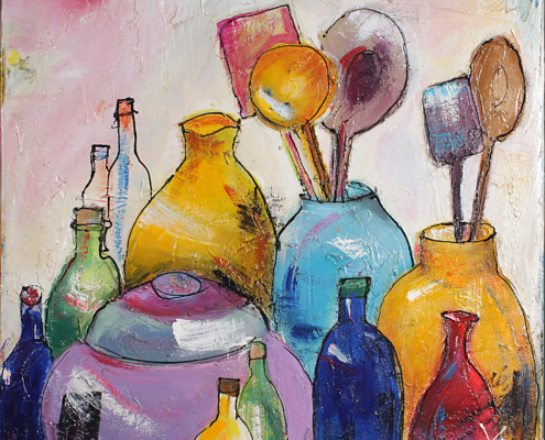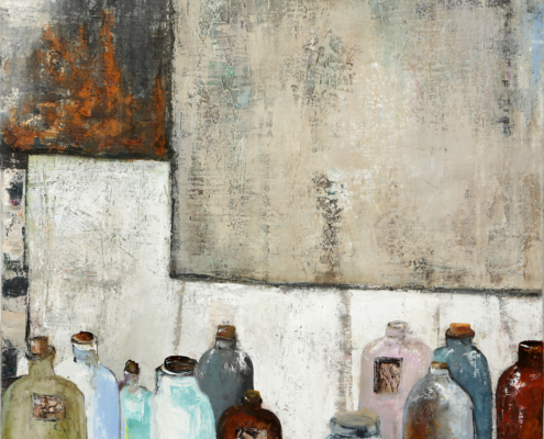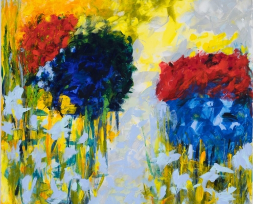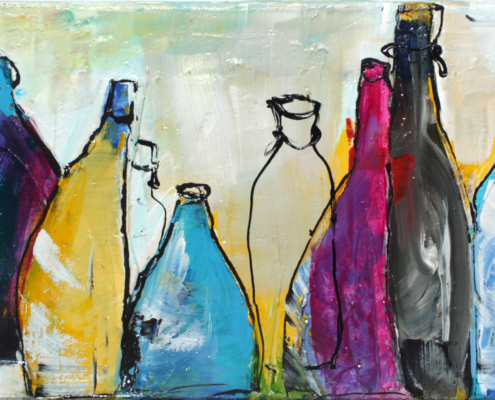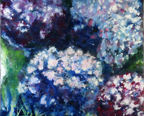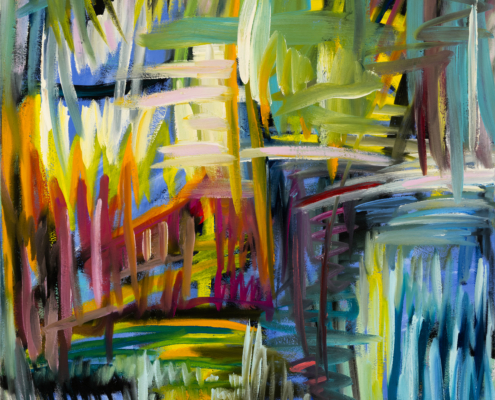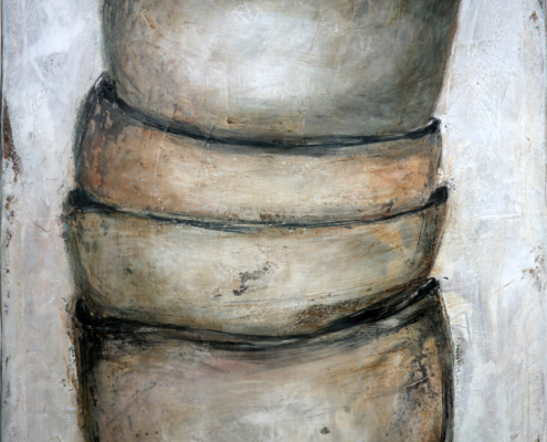 Ich liebe abstrakte Formen, in denen z.B. überraschend reale Vögel und/oder andere Tiere/Pflanzen auftauchen. Dadurch entsteht eine Anmutung zwischen rauh und zart, eine sichtbar werdende Beziehung… “